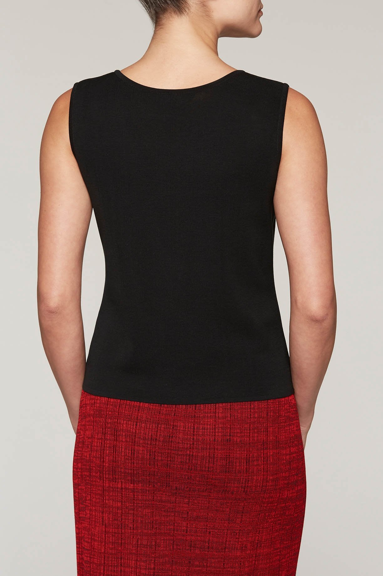 No limit exists on your ability to set yourself apart. Dramatic details, like this tank's oversize red lacing, create a statement look not easily forgotten. Highly versatile in a classic, flattering cut, the wrinkle-resistant top makes for a great work trip companion. Meeting a new business partner? Comfortably convey confidence and capability with a matching Ming Wang skirt and jacket. Headed out for a casual networking dinner? Pair with dark denim, black booties, and a long-line black knit sweater.