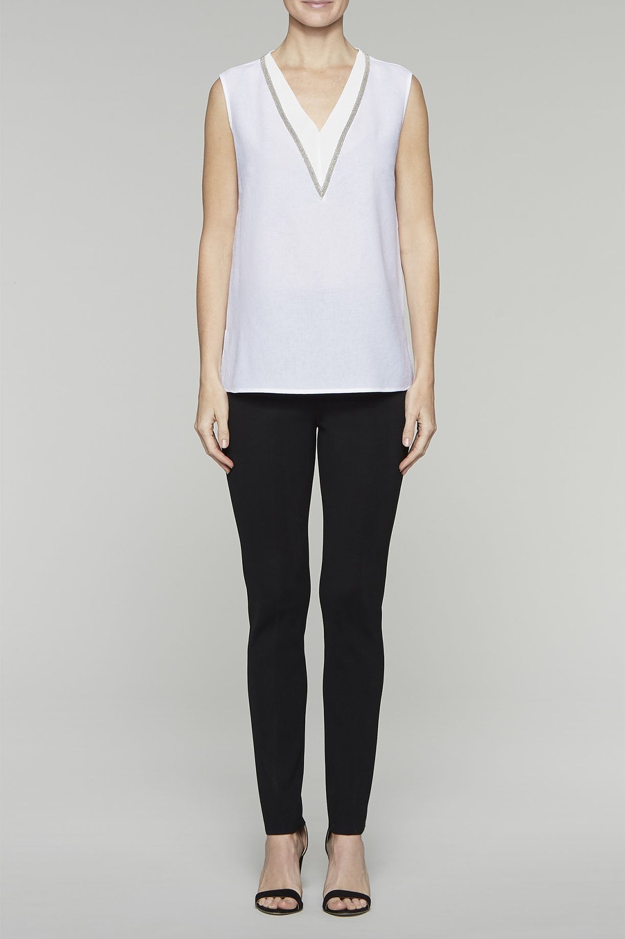The breathtaking trim of this v-neck tank has special-occasion sparkle, with the comfort and versatility to go casual, too. It's designed with a loose fit and side slits to hug the curves just so. Dressing for a corporate awards ceremony? Pair with a monochromatic white or black look and pumps and similarly glinty jewelry. Heading to a neighbor's cookout? Just add slim-cut dark denim with flat nude or white sandals and minimal accessories.